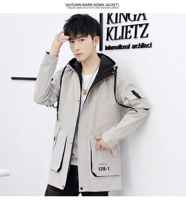 Men's coat spring and autumn windbreaker medium length casual jacket men's autumn coat