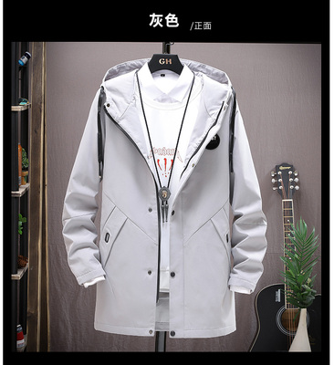 2021 men's Korean fashion spring and autumn jacket men's windbreaker medium length