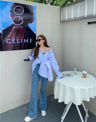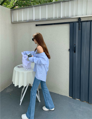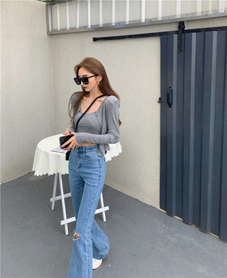 Real price high waist long leg jeans wide leg pants straight tube micro trumpet jeans