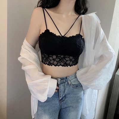 Real price real shot lace neck strap vest women's sexy short top bra spring