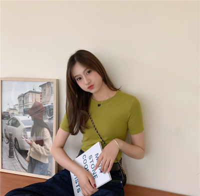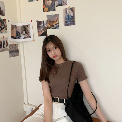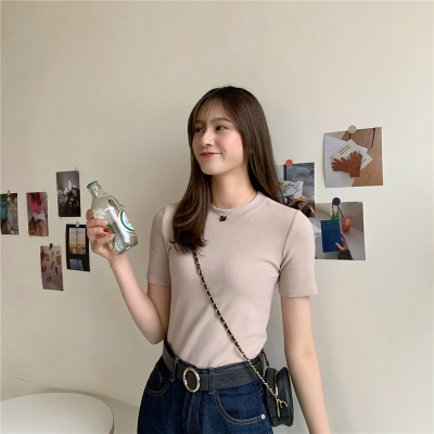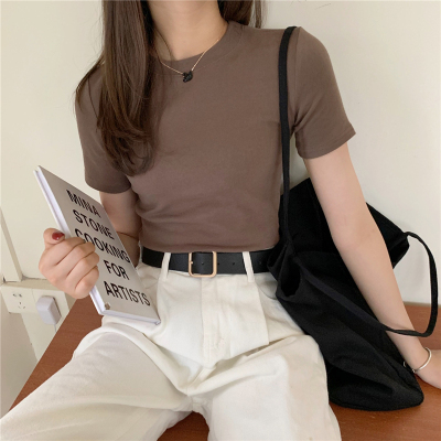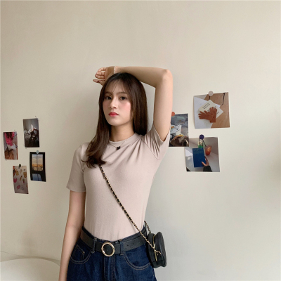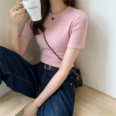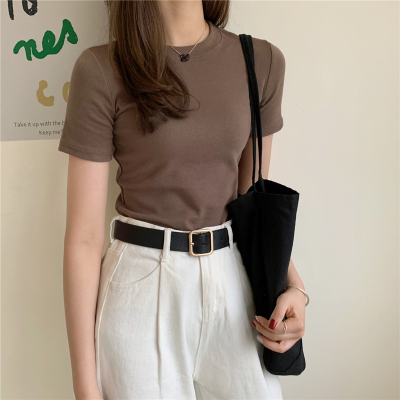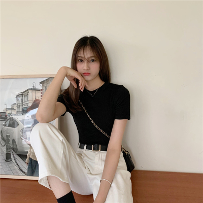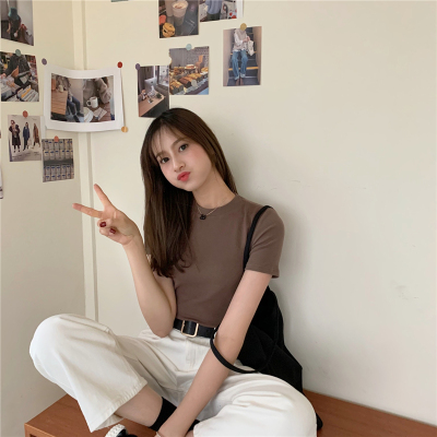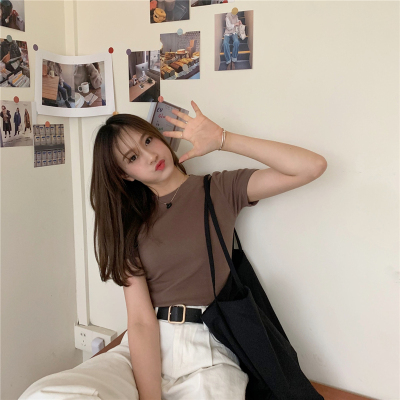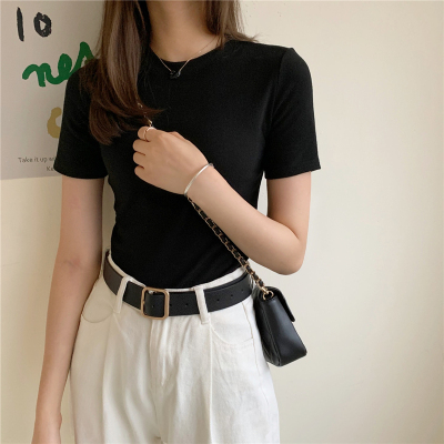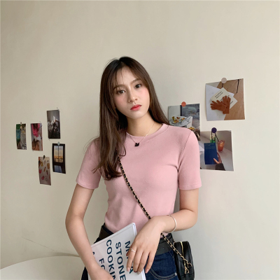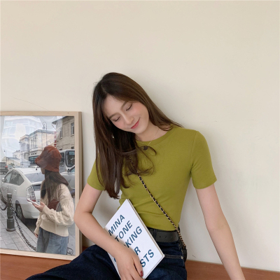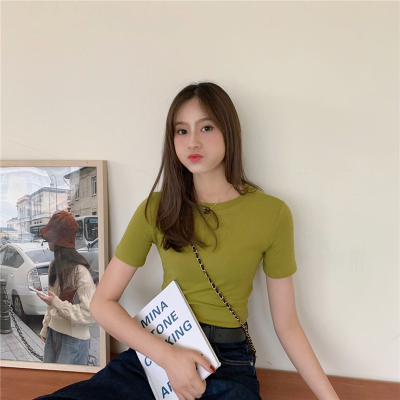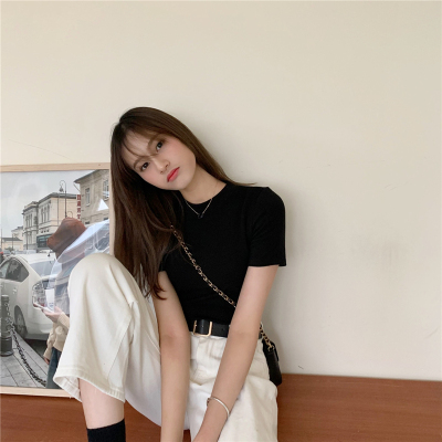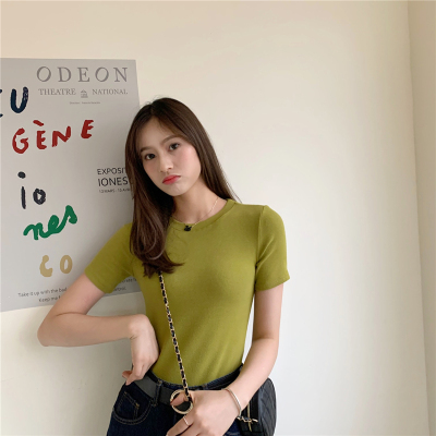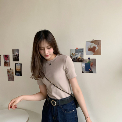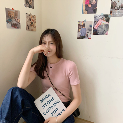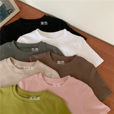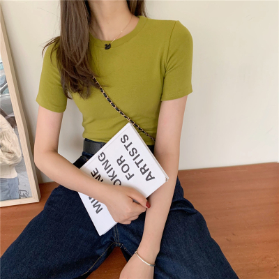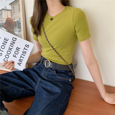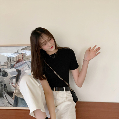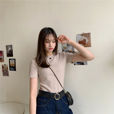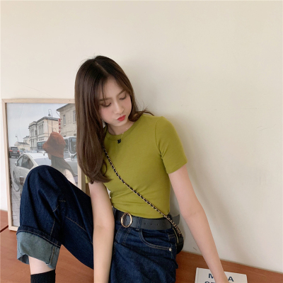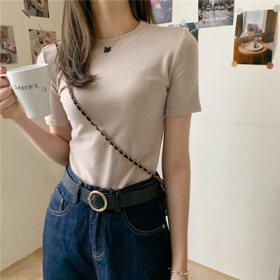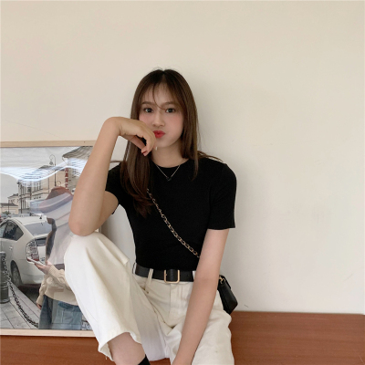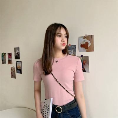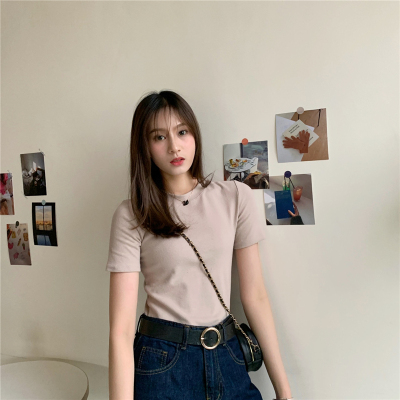 Real price summer new slim and versatile solid short sleeve T-shirt women's short top