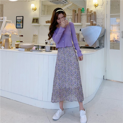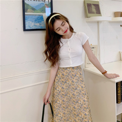 Real shot real price summer new Korean style small fresh floral temperament A-line skirt skirt skirt