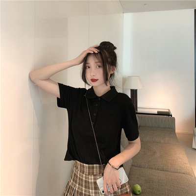 Real shot pit bar 95% cotton 5% spandex solid color slim versatile pit bar Polo short sleeve T-shirt