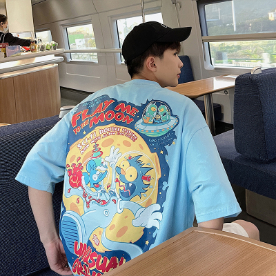 2021 summer fun cartoon print short sleeve t-shirt men's fashion brand ins Harajuku style half sleeve T-shirt