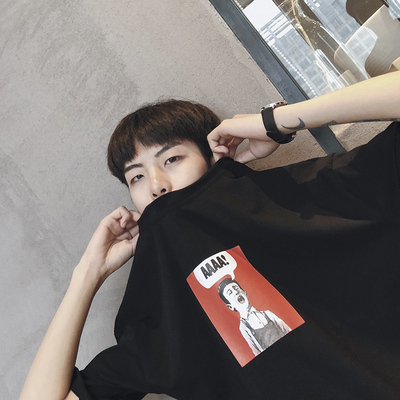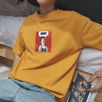 Summer Les handsome t Korean solid color simple small fresh short sleeve T-shirt trend printing youth half sleeve men's tee