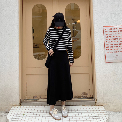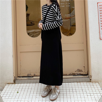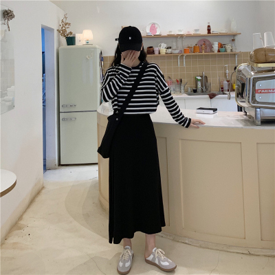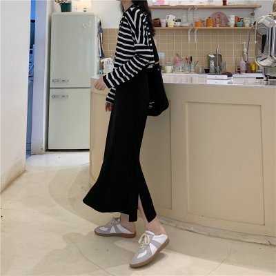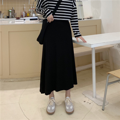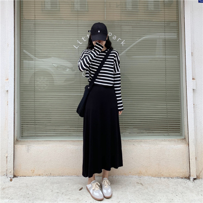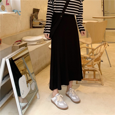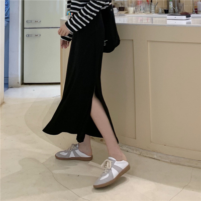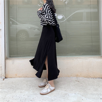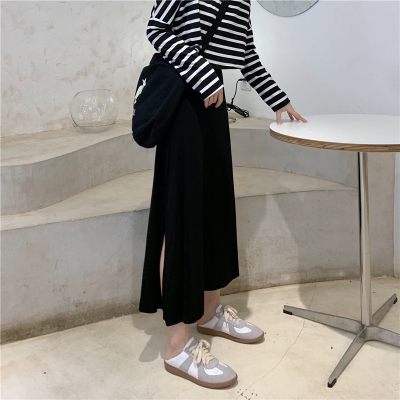 Real shooting summer new Korean character skirt skirt big swing versatile split small black skirt pure cotton
