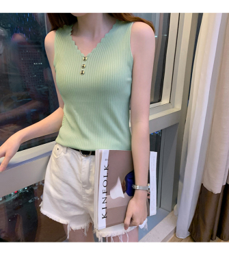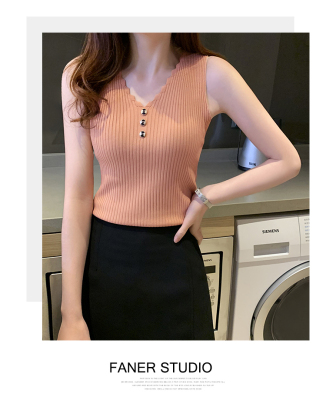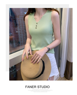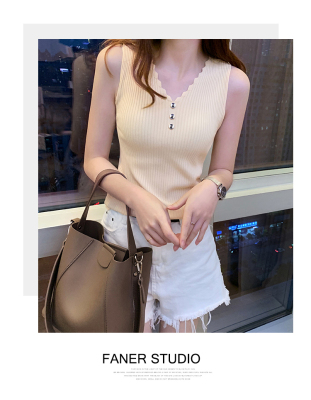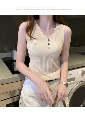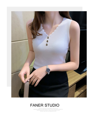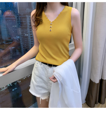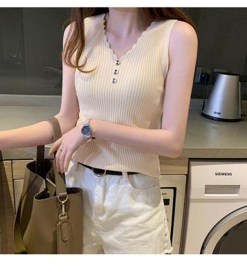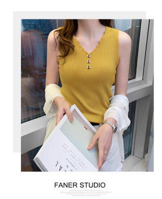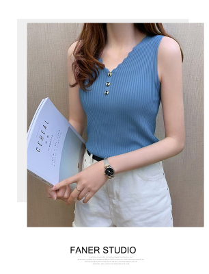 Women's ice silk t-shirt design with suspender vest inside and outside in summer
