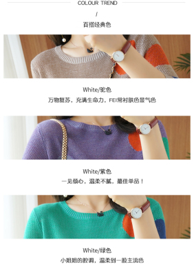New spring knitwear women's T-shirt women's round neck loose color bottoming top middle sleeve sweater fashion