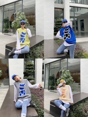 Autumn and winter new dongdamen leisure embroidery bear cashmere knitted sweater with waistcoat and waistcoat