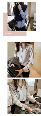 Autumn new large women's top loose vertical stripe shirt women's fat long sleeve shirt