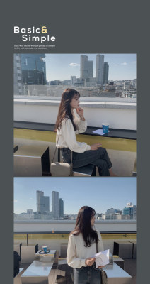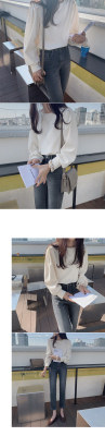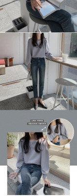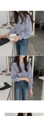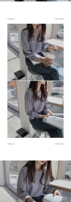 Korean shirt women's loose and versatile spring new round neck bubble sleeve western style age reducing long sleeve top