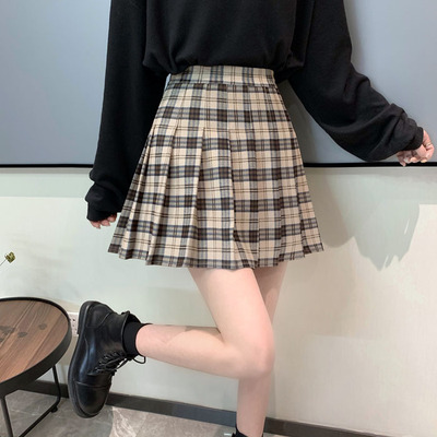 Real price: new Plaid high waist A-line skirt for girls in spring of 2021