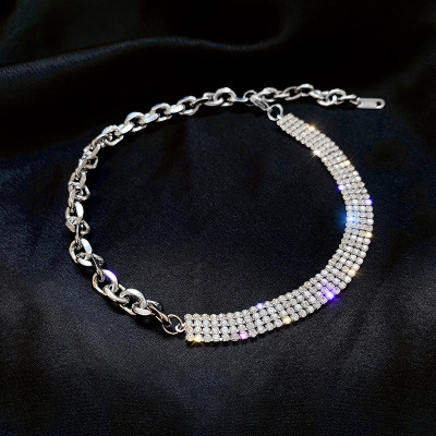Real shot net red necklace women's niche design lock full of diamond bone chain, simple personality collar, short neck band
