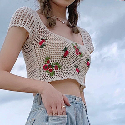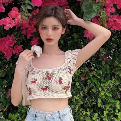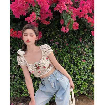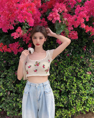 Guima girl summer flower embroidery short knitted vest elegant sweet age reducing sleeveless vest suspender top