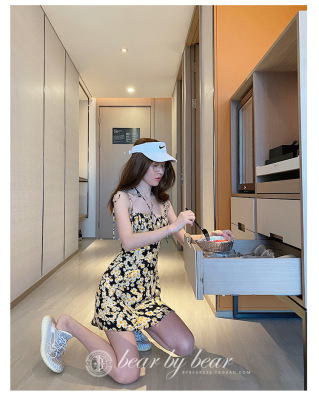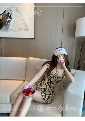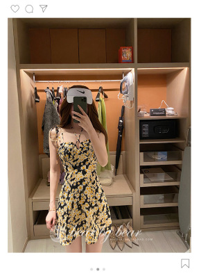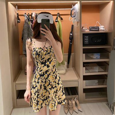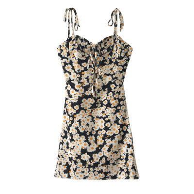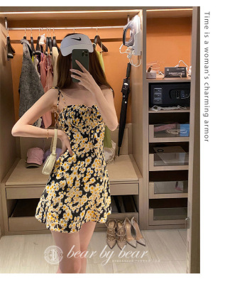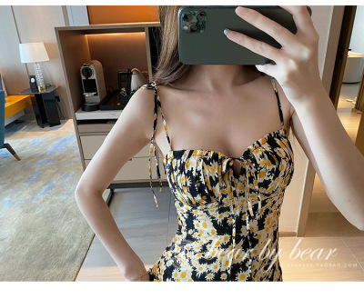 Blogger's summer retro Daisy floral Strapless strapless dress sexy open back seaside holiday skirt