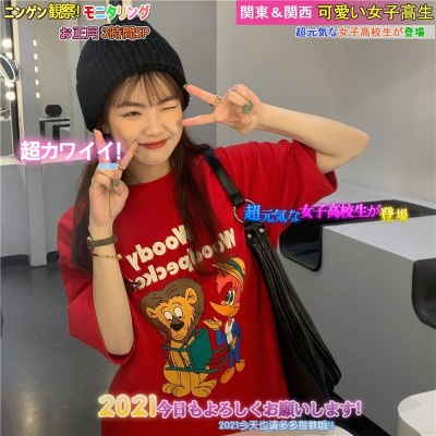 Cartoon lion king and duck loose short sleeve T-shirt in spring and summer