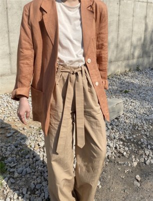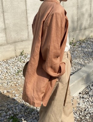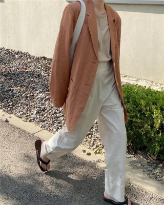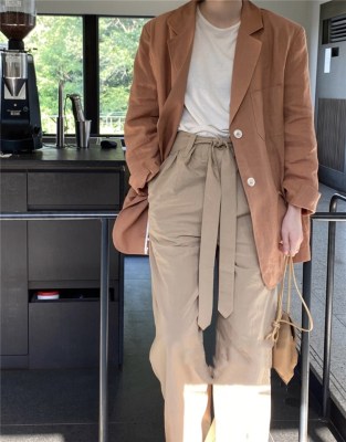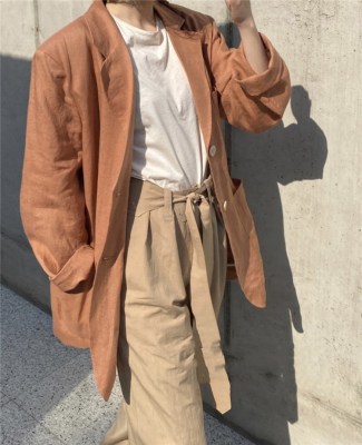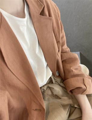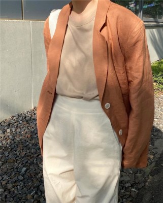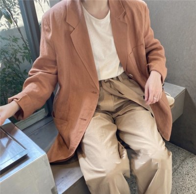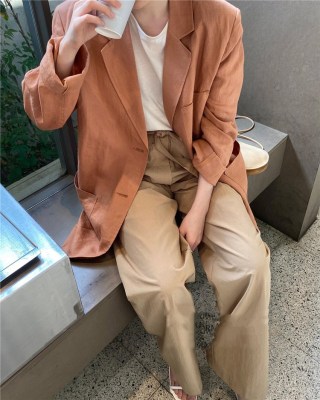 Korean earth orange skin lift white clean Lapel loose thin suit autumn coat