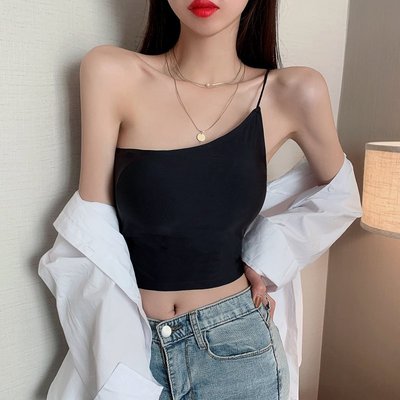 Real price real shot one shoulder strap irregular suspender vest wrap chest off shoulder top female spring and summer