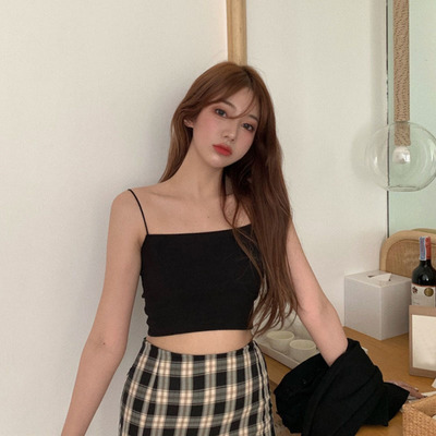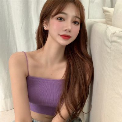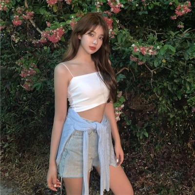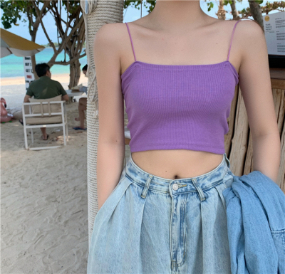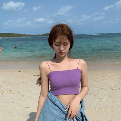 Short suspender, sexy vest, spring new solid off shoulder student casual slim top