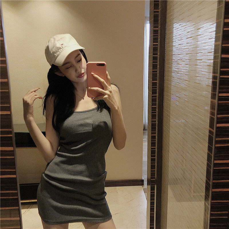 Knitted suspender skirt women's 2021 summer new sexy waist show thin temperament