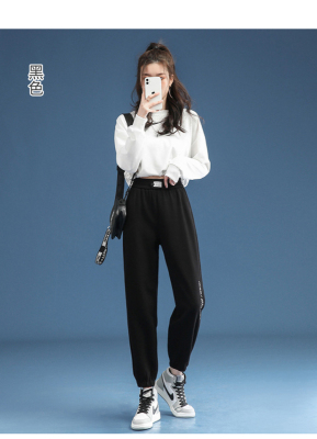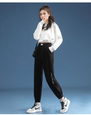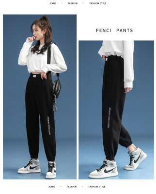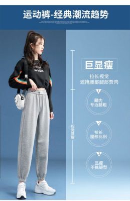 Cotton sports pants women's Korean loose binding spring and autumn style show thin trend, versatile wear casual pants