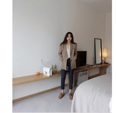 Casual Blazer coat women's 2021 spring and Autumn New Korean version British style chic net red black suit top fashion