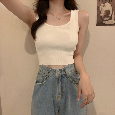 Real price new Korean slim fit for spring with short simple knitted vest and suspender top