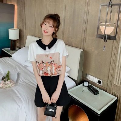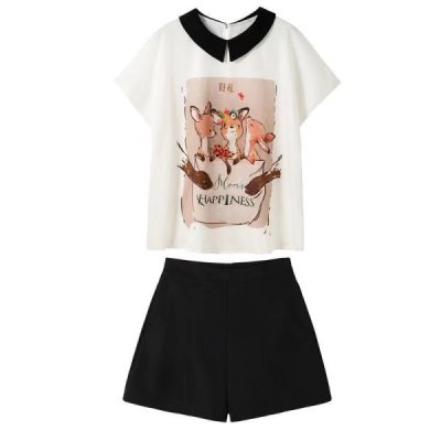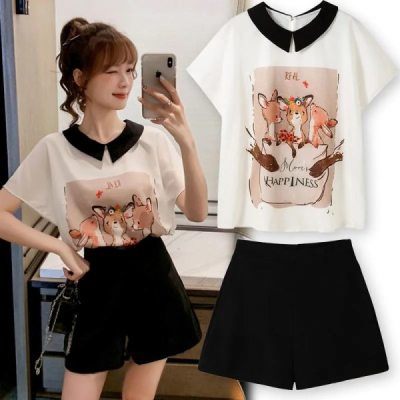 Spring and summer Korean style loose and versatile Bat Sleeve Chiffon Shirt Shorts Set women's summer two piece set