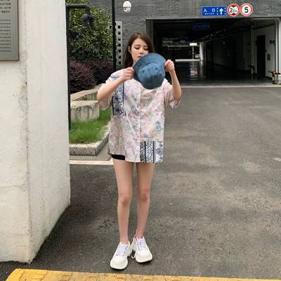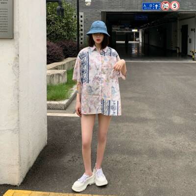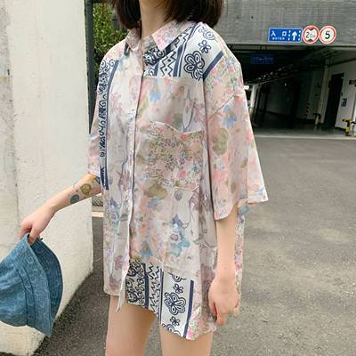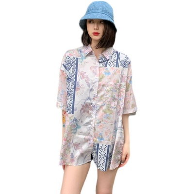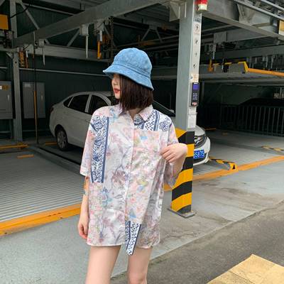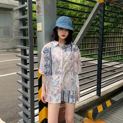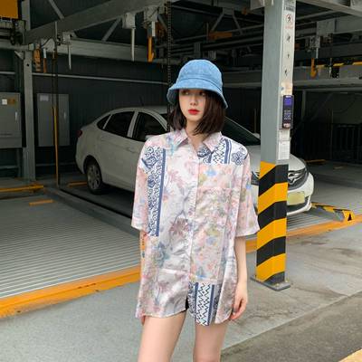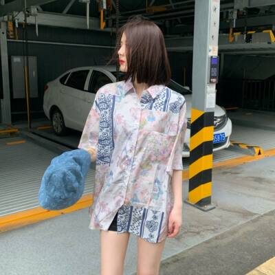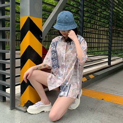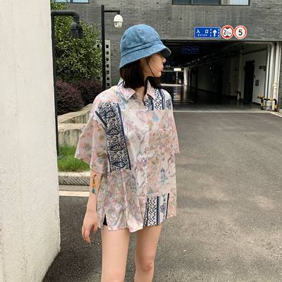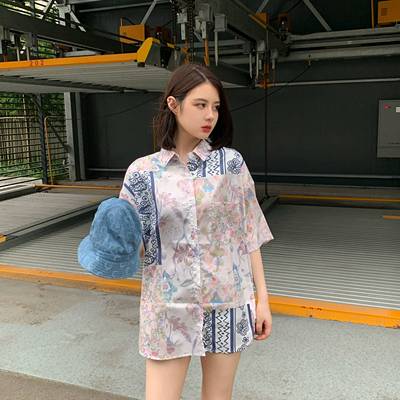 Hong Kong style retro printed shirt for women's spring wear