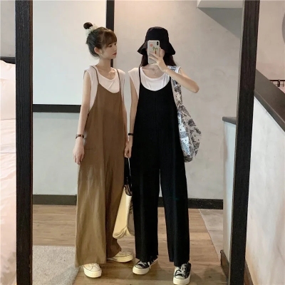 Suit women's summer 2021 new Korean loose and thin one-piece sling wide leg strap pants versatile vest two-piece set
