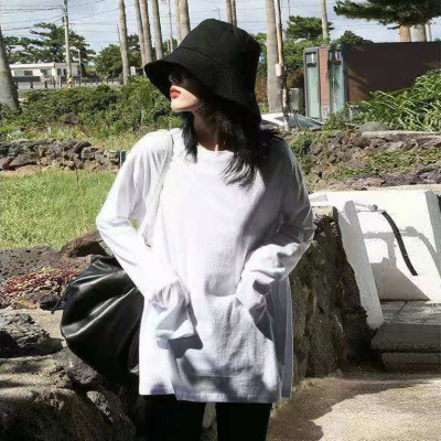Ins super fire long sleeve T-shirt women's 2021 solid color inside with bottom coat Korean fashion students wear loose clothes outside