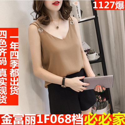 Large summer new fashion solid color Collar Chiffon suspender vest female loose fitting student versatile top