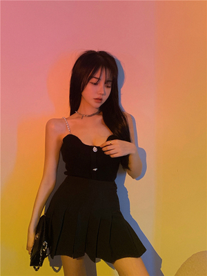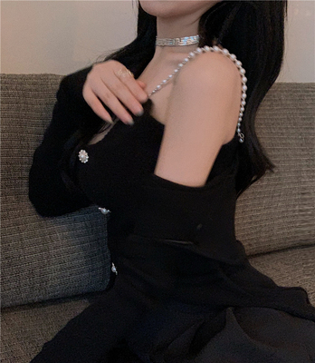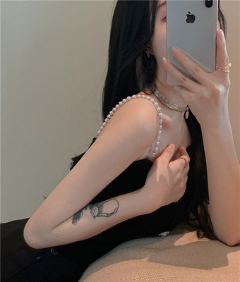 Real shot new style pearl string shoulder belt bra top with wool backing