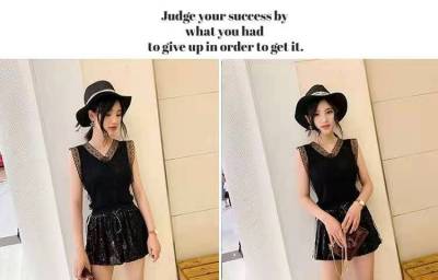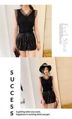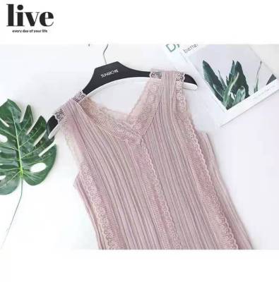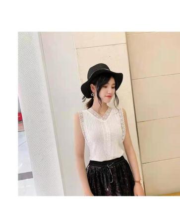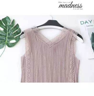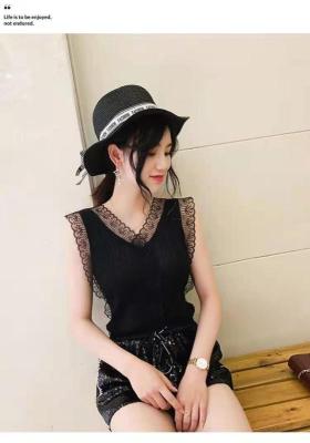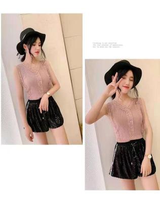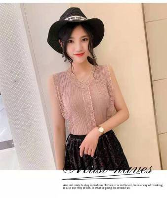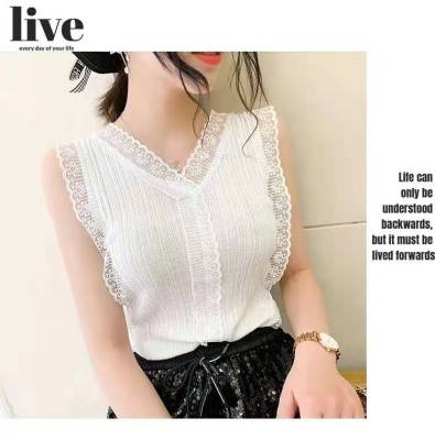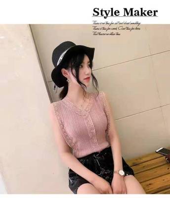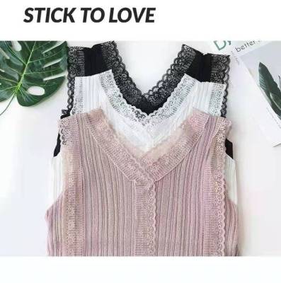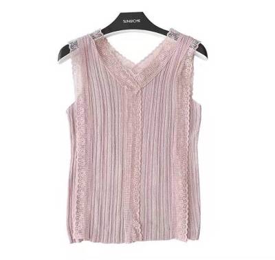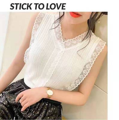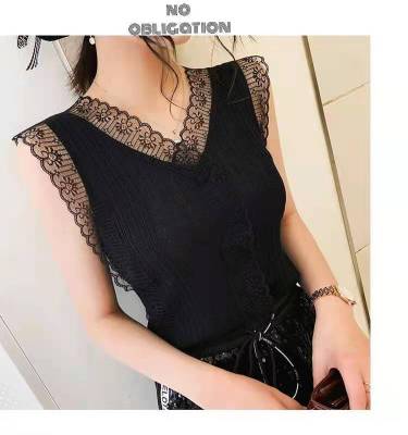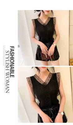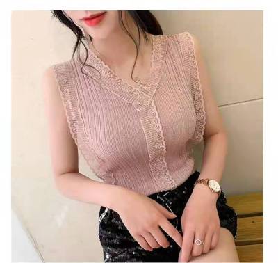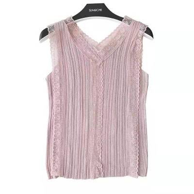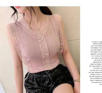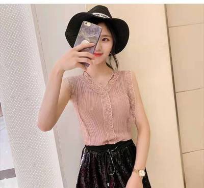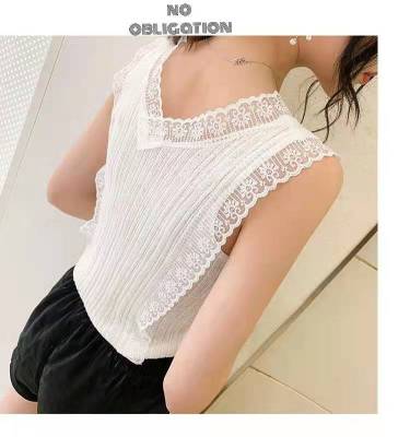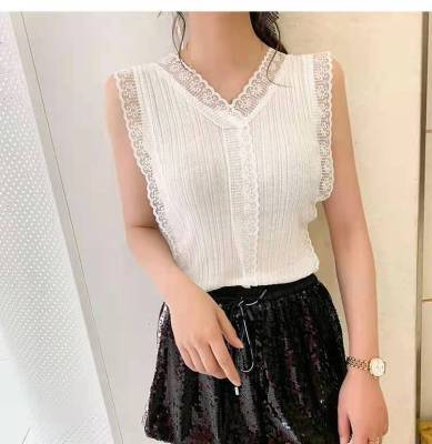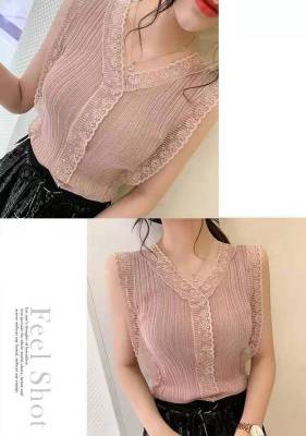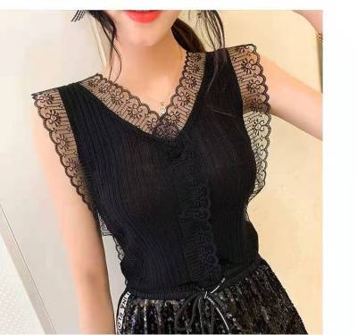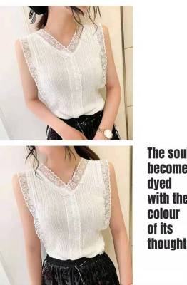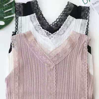 Sweet collar cut-out lace knitted vest for Korean women's slim fit