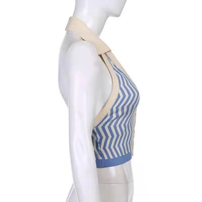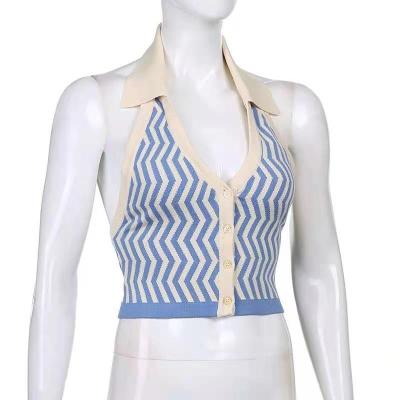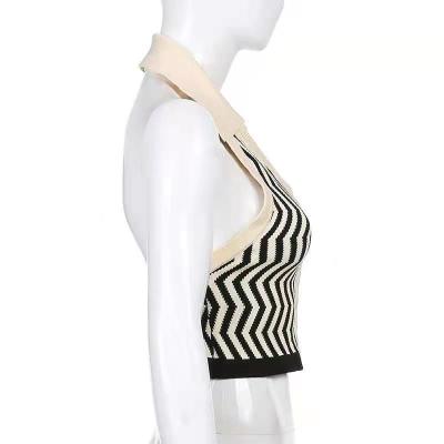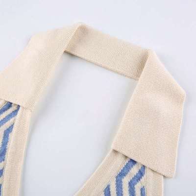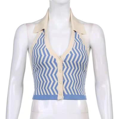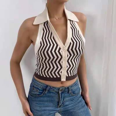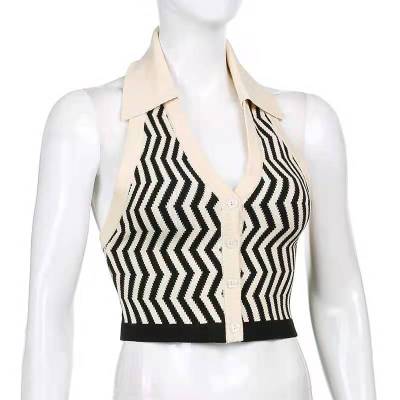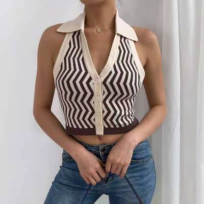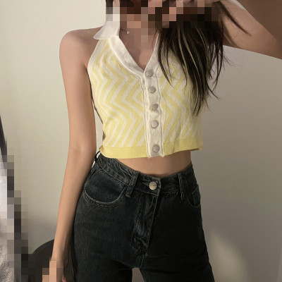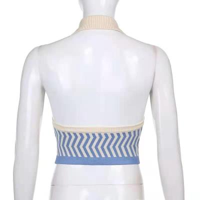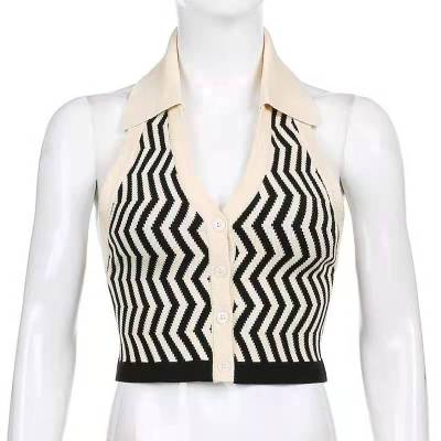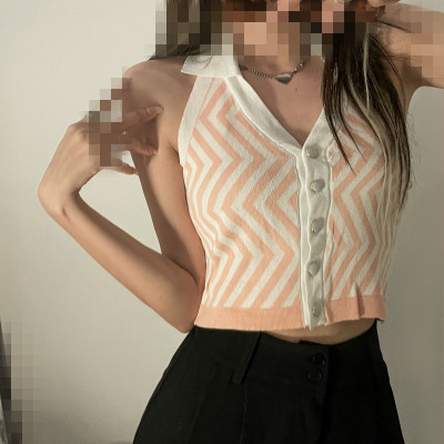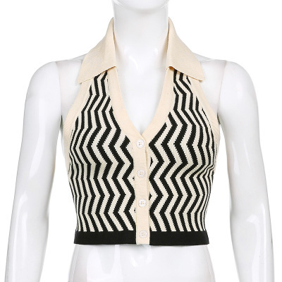Lapel, neck, contrast color, single breasted, slim, open back knitted waistcoat, short