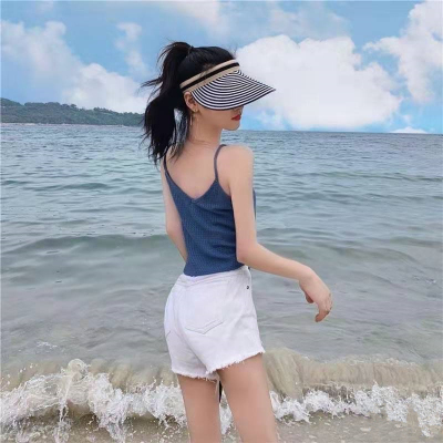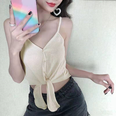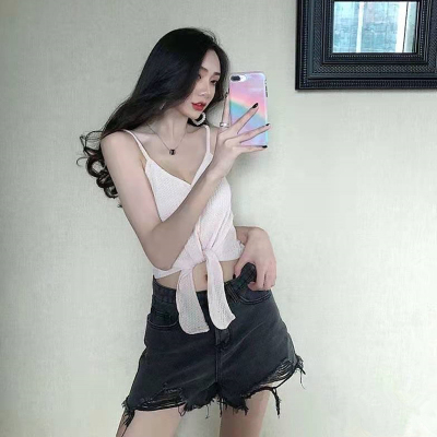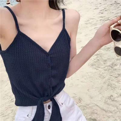 New Hong Kong style retro knitted open navel short suspender waistcoat for women