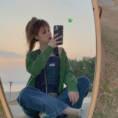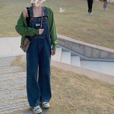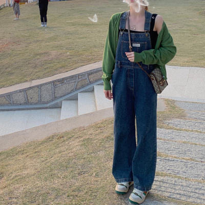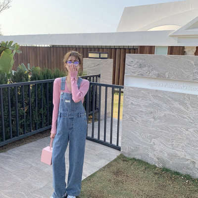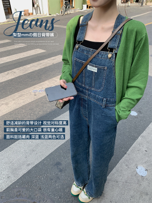 Spring and autumn jeans suspenders women's Korean version loose straight tube age reducing wide leg pants show skinny jeans