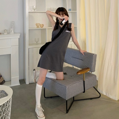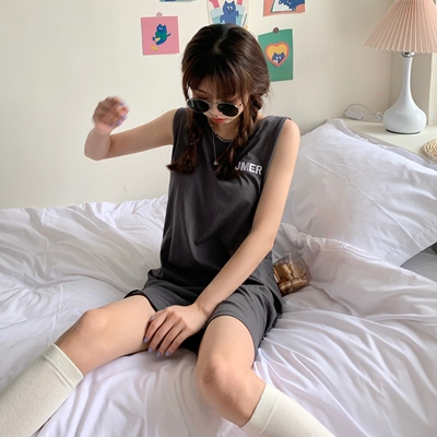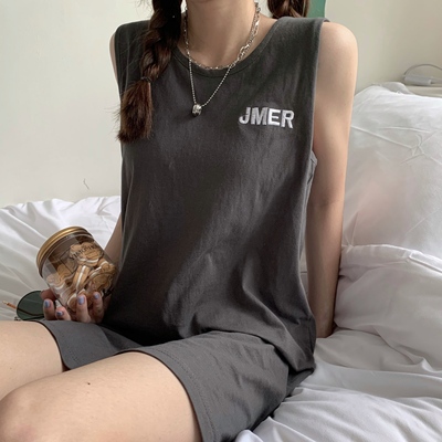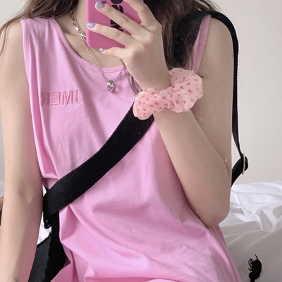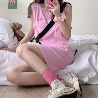Real shot pink sniper sports girl's sleeveless vest skirt women's summer loose casual embroidery letters