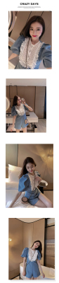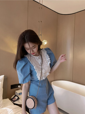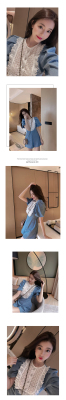 Denim Jumpsuit women's stitching lace spring little girl's dress