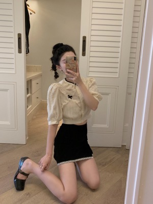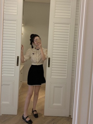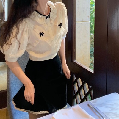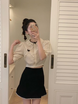 Taokelai spring and autumn shirt + skirt two piece short sleeve sweet shirt suit