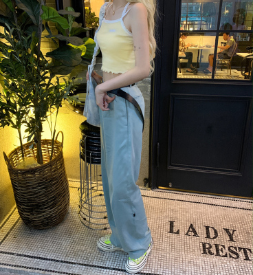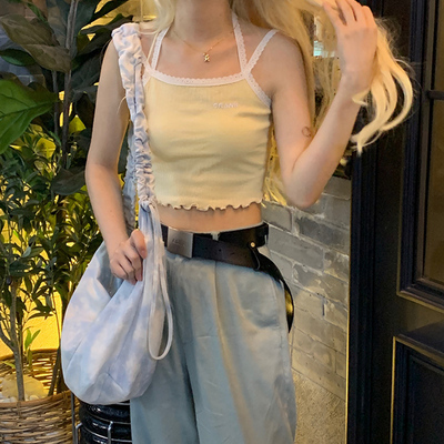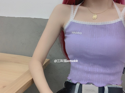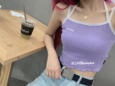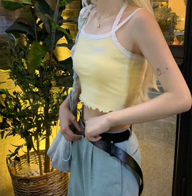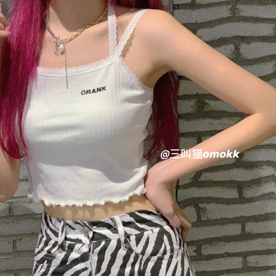 2021 summer New South Korean crank vest women's neck sling lace short waist show thin base coat
