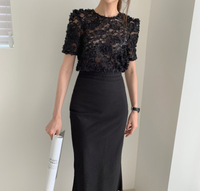 Retro Mid length high waist hip fishtail skirt summer skirt straight skirt