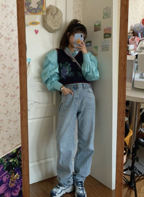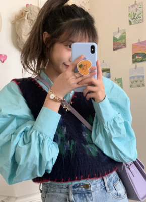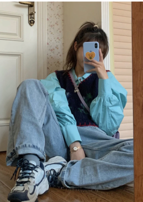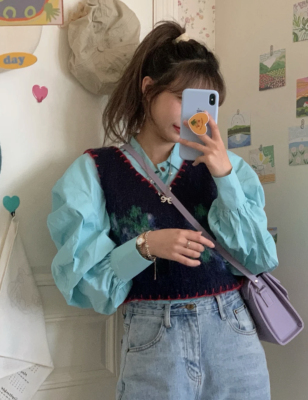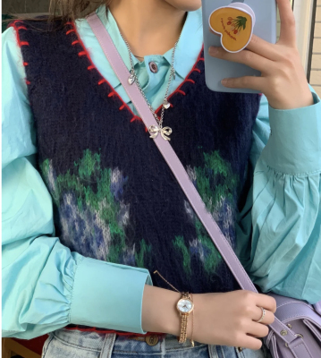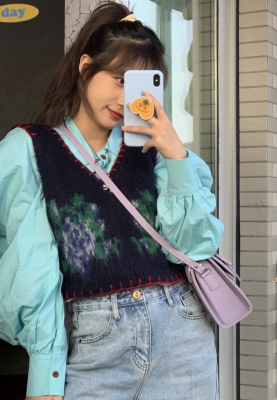 Real time jacquard wool sweater V-neck vest vest vest women's sweater + green shirt