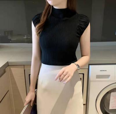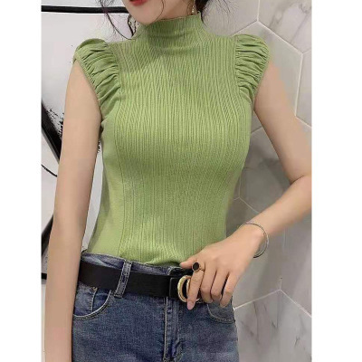 Spring and summer new simple solid color half high collar pleated Pullover Sweater women's sleeveless vest
