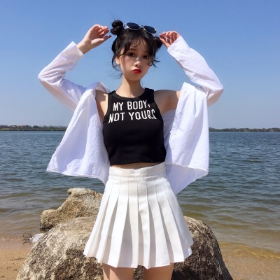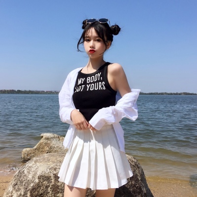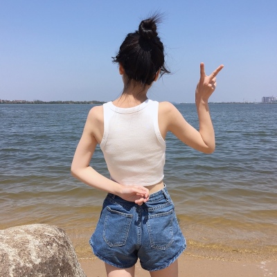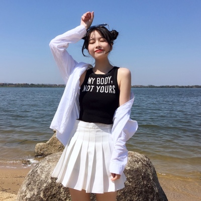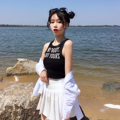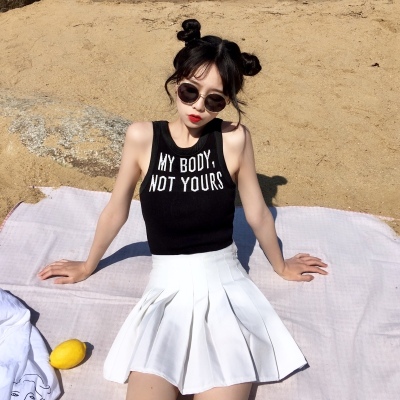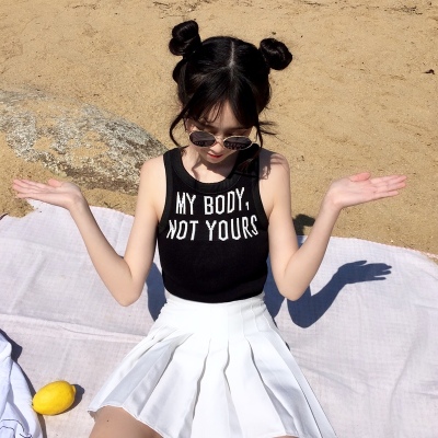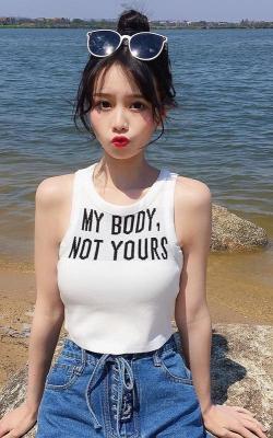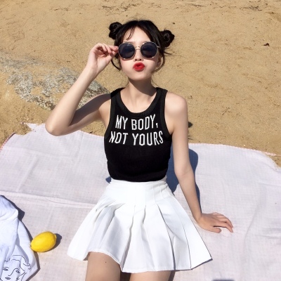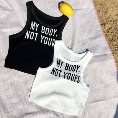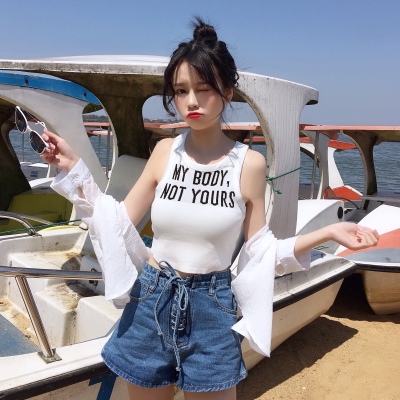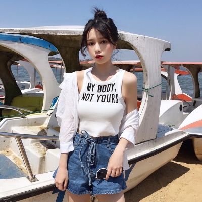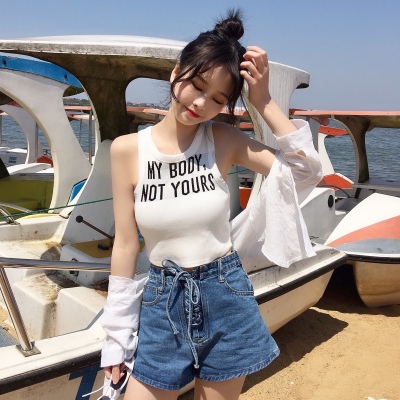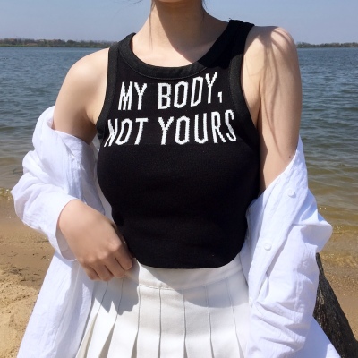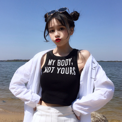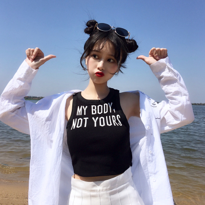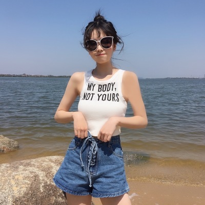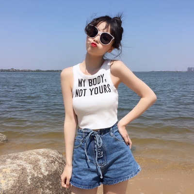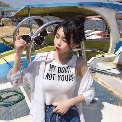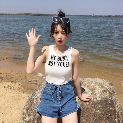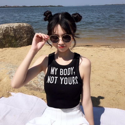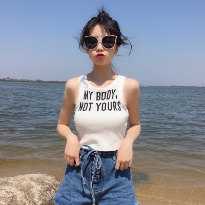 Real shot summer new sexy belly button jacquard letter playful short sleeveless knitted vest