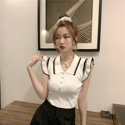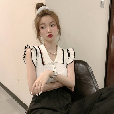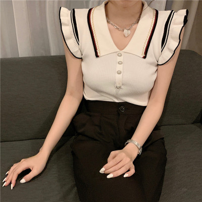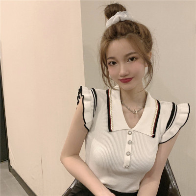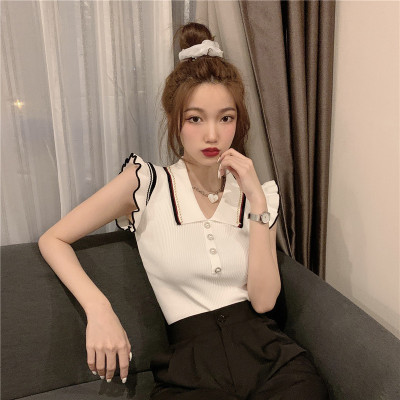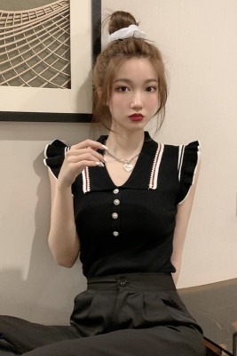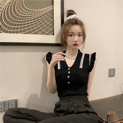 Summer new Korean style versatile collar thin design small number of sleeveless knitted T-shirt women's fashion