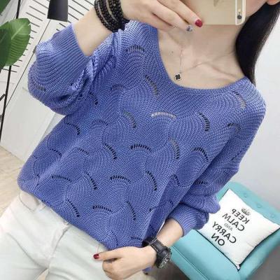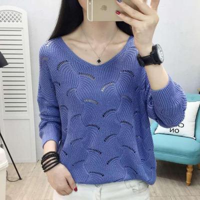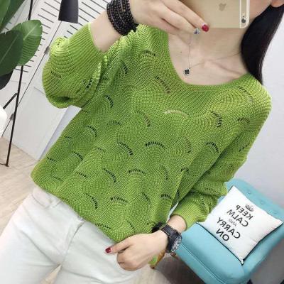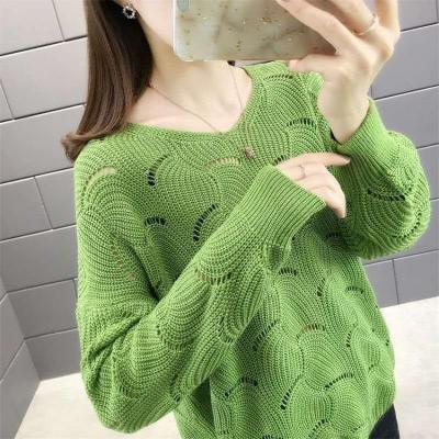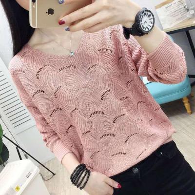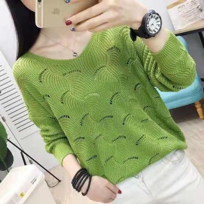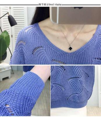 Spring new thin women's Woolen collar hollow out short knitted bottomed shirt, loose outer jacket fashion
