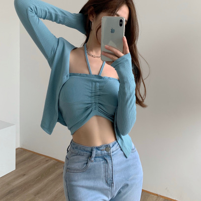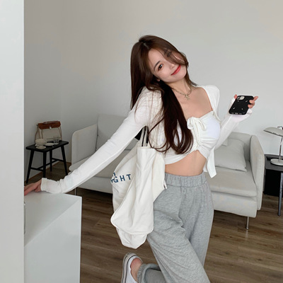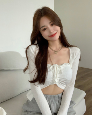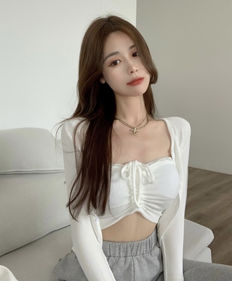Real price! Hanging neck and pulling rope to wrap chest + thin cardigan coat