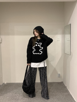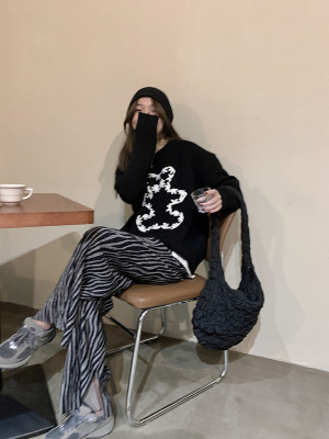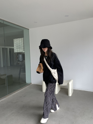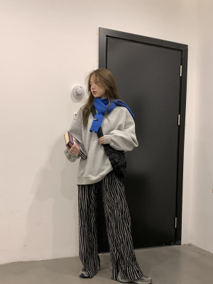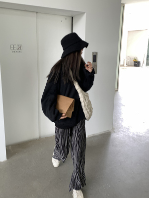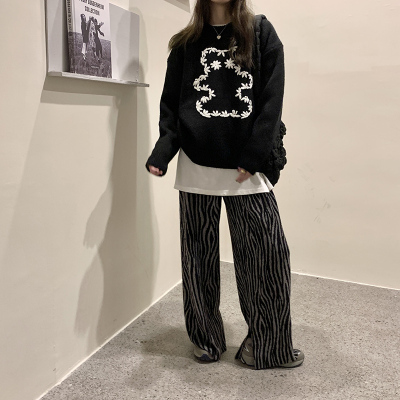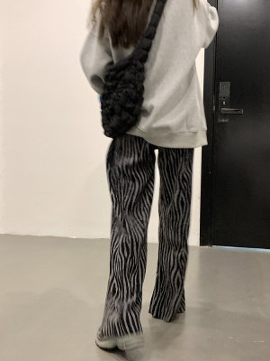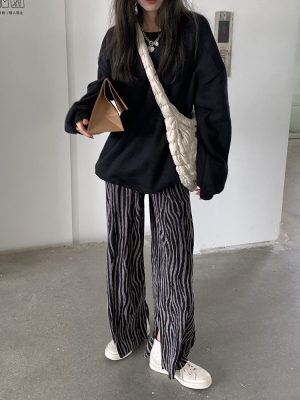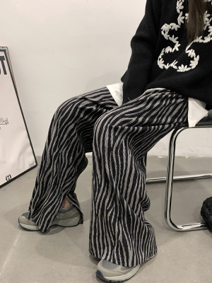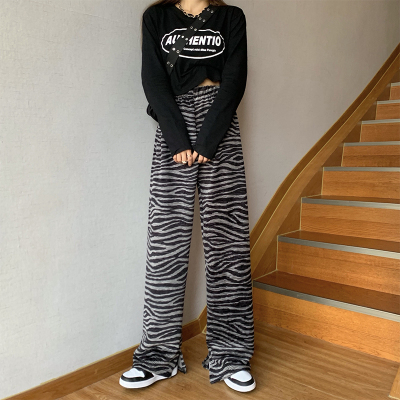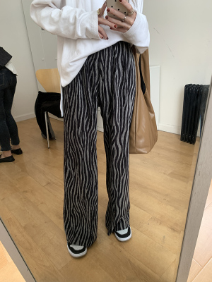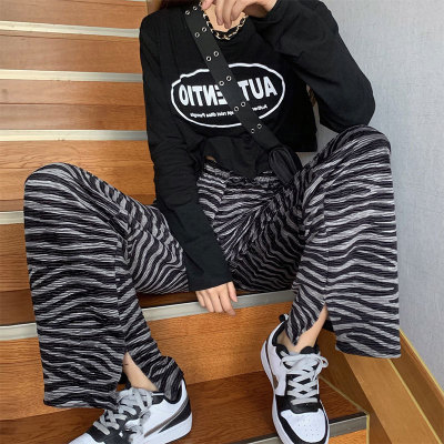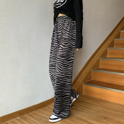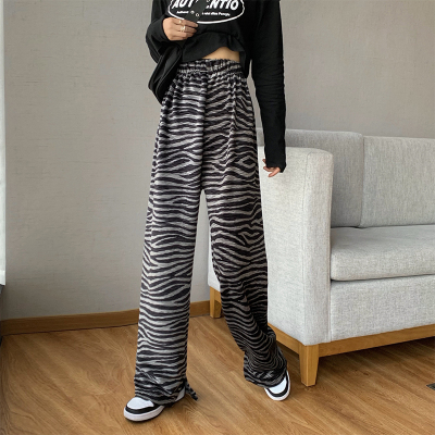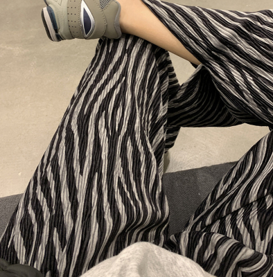 Guantu pure cotton zebra pattern wide leg pants women's floor length pants show thin straight tube leisure pants spring and summer new Korean version