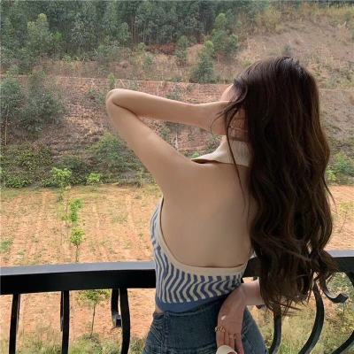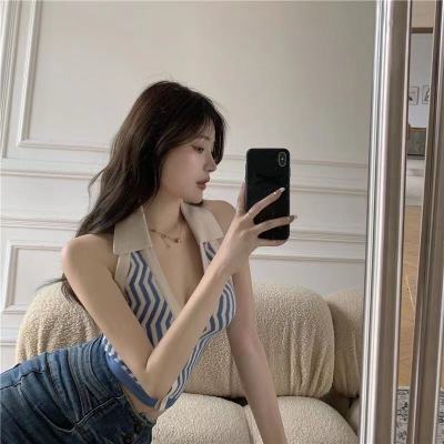Women's Retro striped collar with halter waistcoat and bare back top